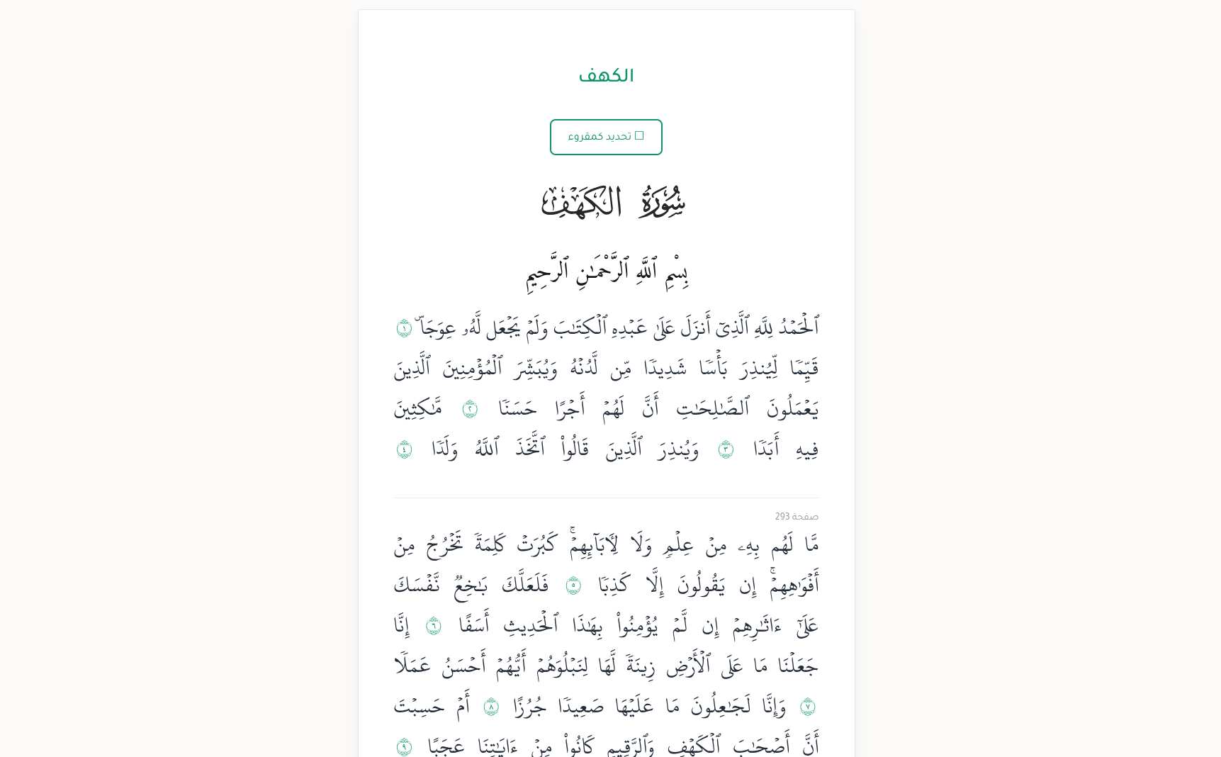 تعرض الآيات بالرسم العثماني بالاعتماد على API من Quran.com