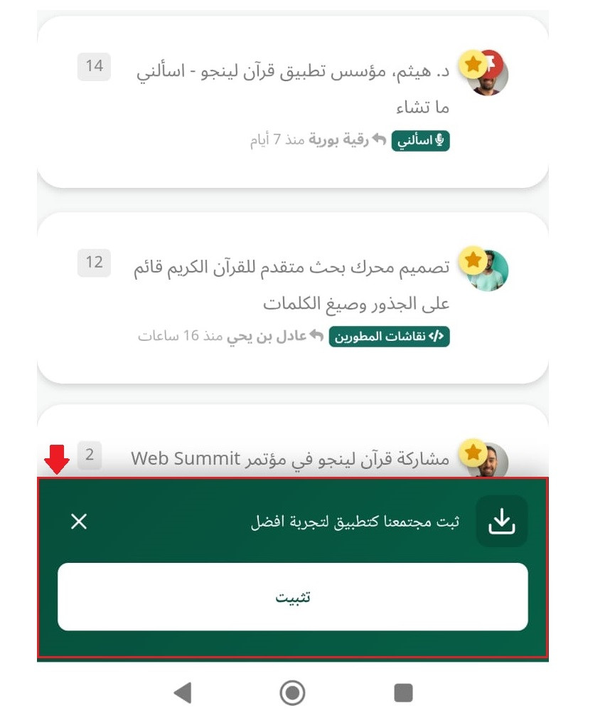 جرب تثبيت المجتمع كتطبيق على هاتفك، وشاركنا أي ملاحظات حول تجربة استخدامه.