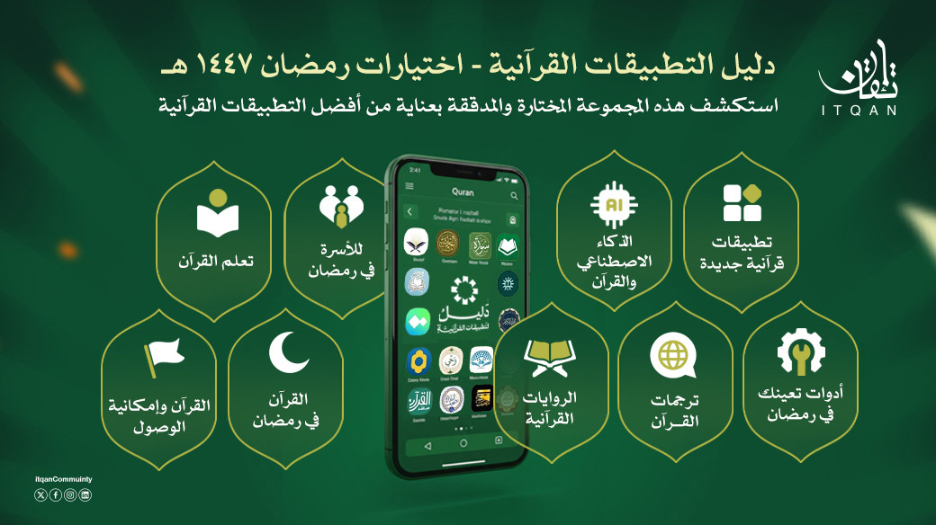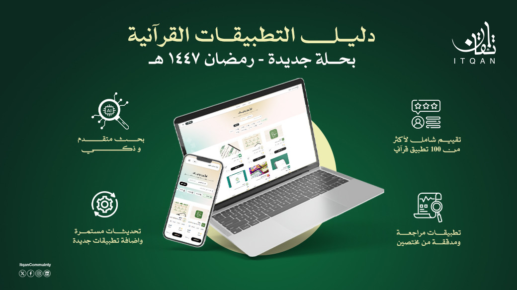 مع بداية شهر القرآن، حيث يتجدد الارتباط بكتاب الله تلاوةً وتدبرًا وعملًا، نشارككم في مجتمع إتقان النسخة المحدّثة من دليل التطبيقات القرآنية، في حلّة جديدة للعام الهجري 1447هـ.